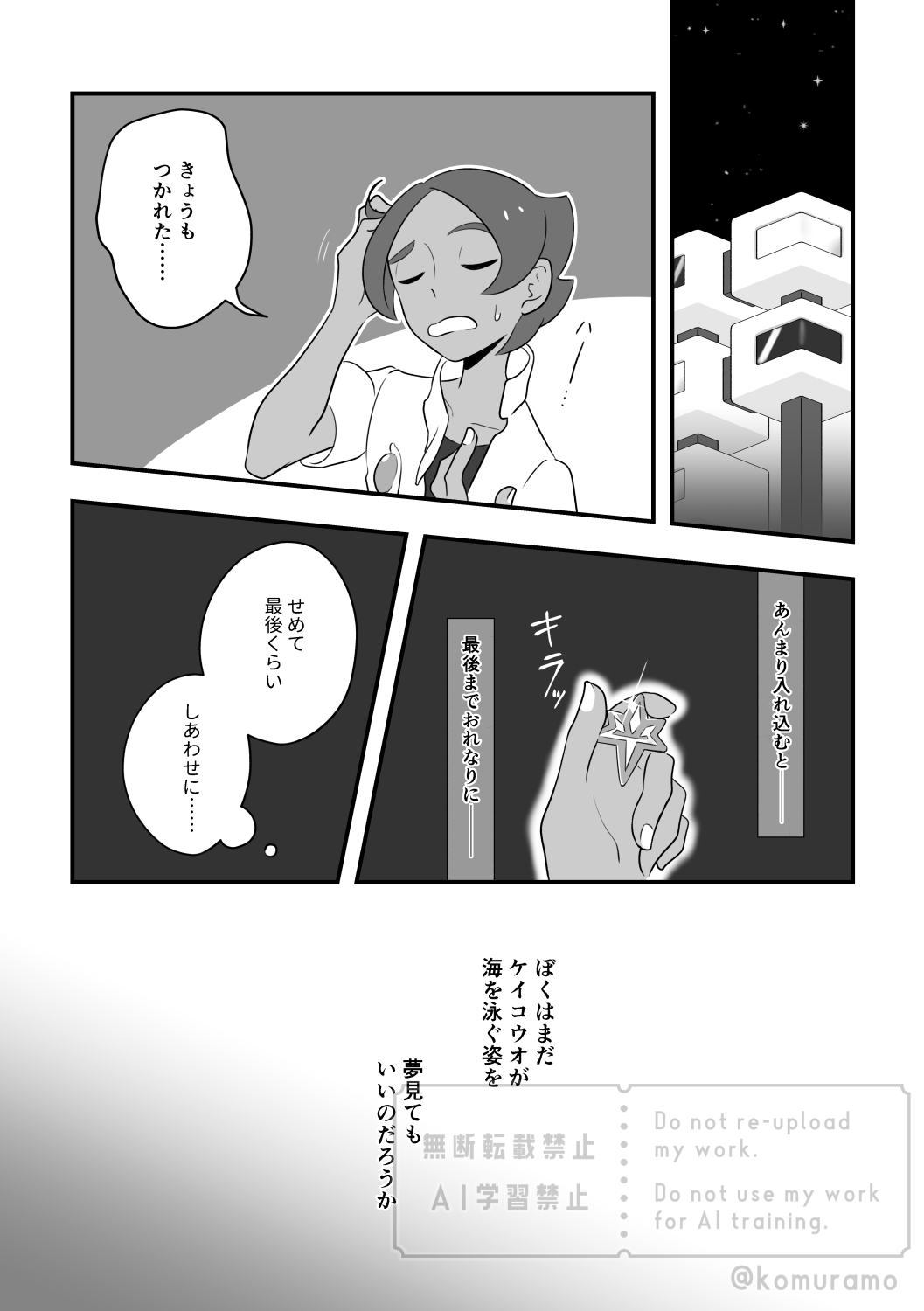 2020年2月1日発行 エーテルアンソロ「海の上の箱庭で」にて収録した漫画の再録になります。拙い部分の多い作品になりますが、当時かなり悩みながらも描いた思い出深い作品です。アンソロに参加・執筆してくださった皆様とアンソロをお手に取ってくださり、読んでくださった皆様に永遠に感謝いたします。